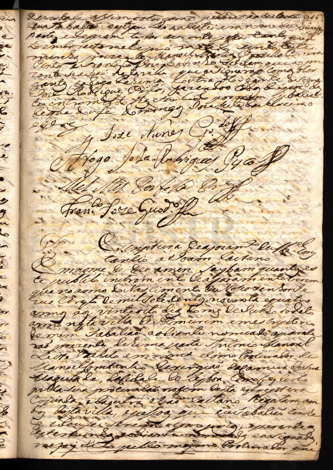 PT-ADSTR-NOT-01CNALR-001-0049 – Portugal, Arquivo Distrital de Santarém, Cartóio Notarial de Almeirim – 2.º Ofício, Notas para escrituras diversas, liv.49, f.46 a 49v.